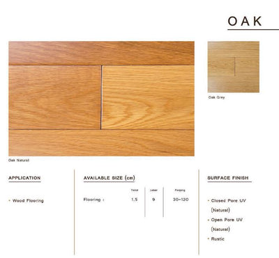 White Oak : Warna yang dimiliki pada American White Oak ini cenderung warna langsat pucat. Selain itu memiliki bercak garis lurus pada bagian inti kayu.
