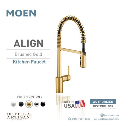 Align One-Handle Pre-Rinse Spring Pulldown Kitchen Brushed Gold Faucet 5923BG